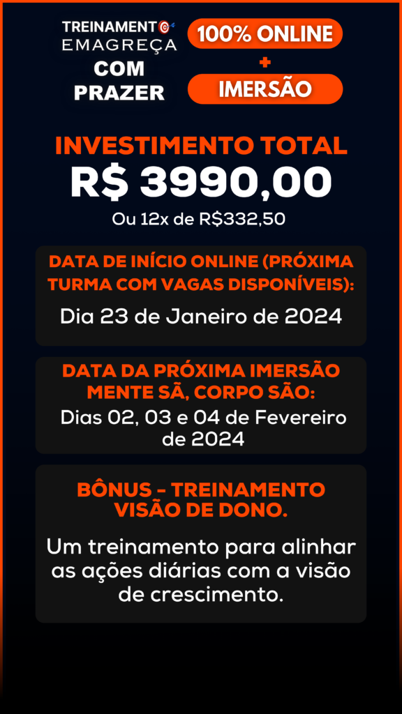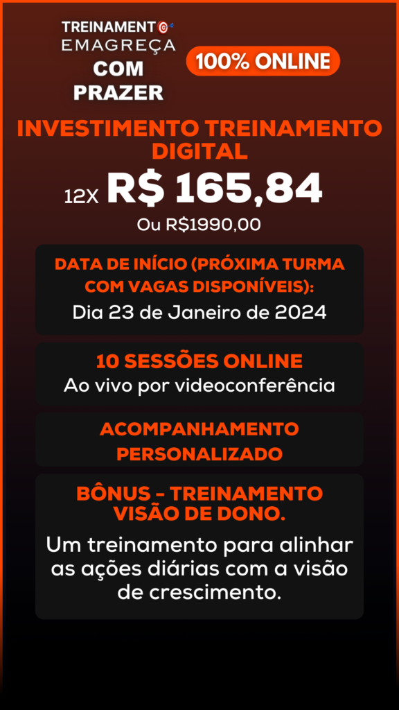 Aprenda a lidar com seu corpo para alinhar ele com seus objetivos. Se você desejar emagrecer, aprenda com um profissional que já ajudou mais de 4 mil pessoas a emagrecer e manter o peso de forma natural e saudável, sem remédios ou dietas mirabolantes.